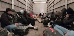 A suspected people smuggling boss was arrested after a lorry containing 33 migrants was intercepted by officers.