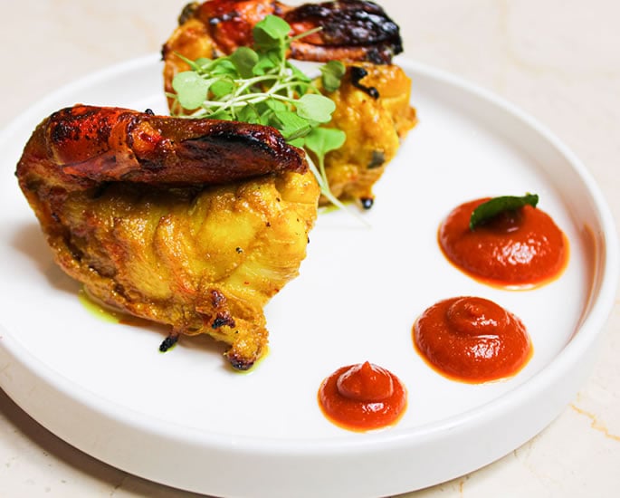 Highlights include achari duck chaat, BBQ butter chicken chop, guinea fowl changezi, and desserts like gur malai toast or dark chocolate and peanut kheer.