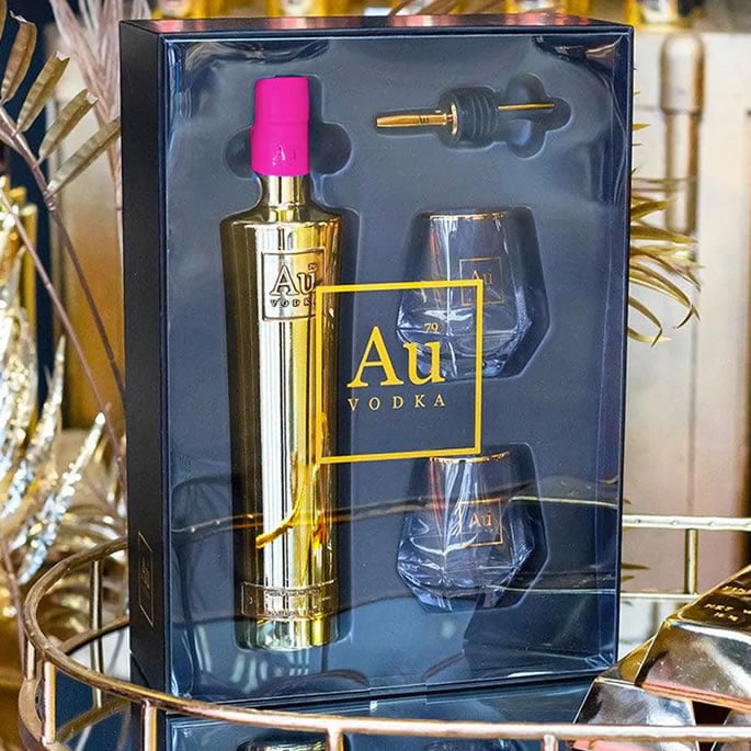 The AU Vodka Glass and Pourer Gift Box Set is a luxurious option for vodka lovers and a standout gift for fans of this premium Welsh brand.