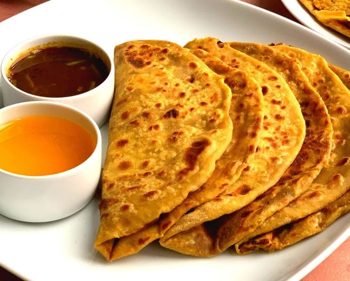 It can be eaten plain or stuffed with ingredients like potato, paneer, cauliflower, or minced meat.