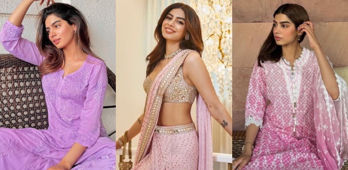 On one occasion, Khushi Kapoor chose to embrace simplicity with a touch of elegance, beautifully encapsulated in a lilac-hued chikankari kurta set.