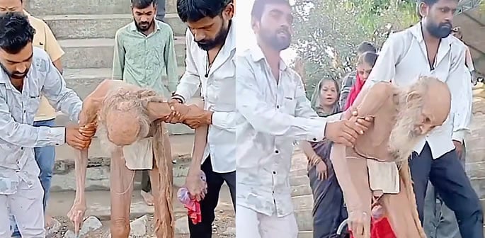 A video of a frail Indian man who was rescued from the cave he was found to be living in went viral.