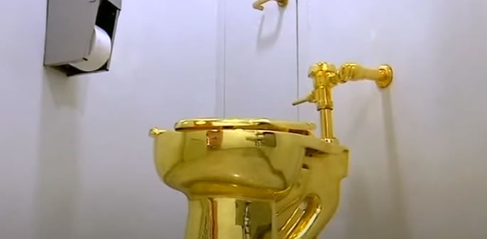 The 18-carat gold artwork, titled America, was fully plumbed and functioning when it was taken in September 2019.