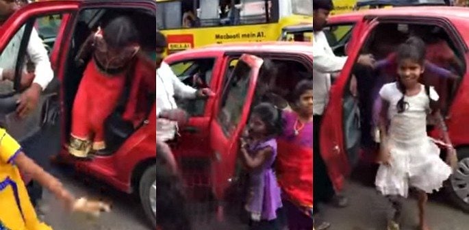 No doubt the girls felt relieved that they left the car, as they would have squeezed into the tiny space.
