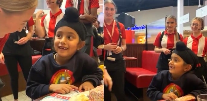 A small British Punjabi child was the subject of harsh comments on Instagram after a video of him celebrating his birthday in TGI Fridays went viral.