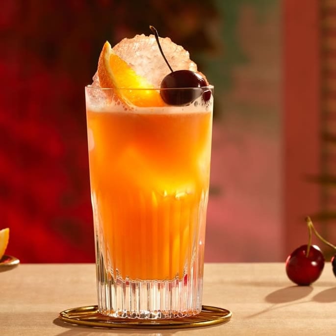 - Garnish with a cherry and an orange slice before serving.
