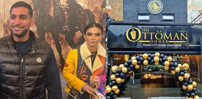 Amir Khan and his wife Faryal Makhdoom attended the launch of a takeaway kebab shop in Ilford.