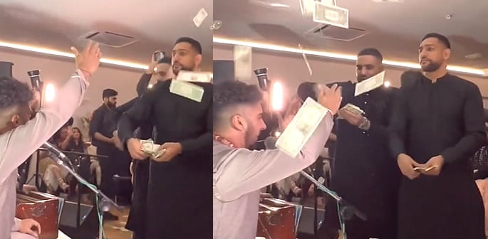 Amir Khan has annoyed some social media users after he was seen throwing cash.