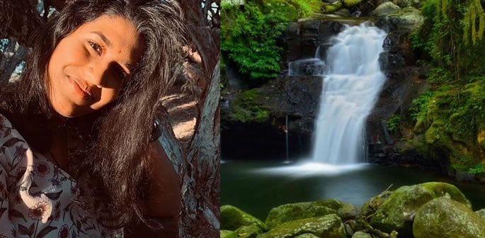 An aspiring doctor fell 20 metres to her death while taking photos at the top of a waterfall.