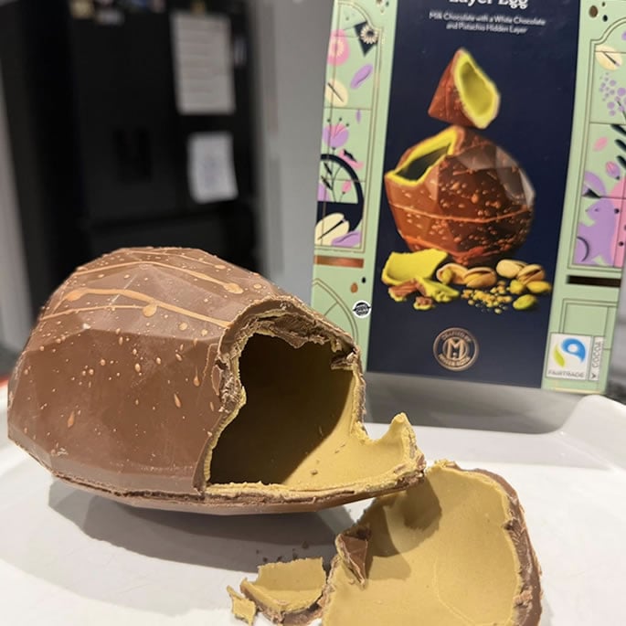Asda’s Exceptional pistachio and Himalayan salt egg brings a refined, grown-up edge to Easter chocolate.
