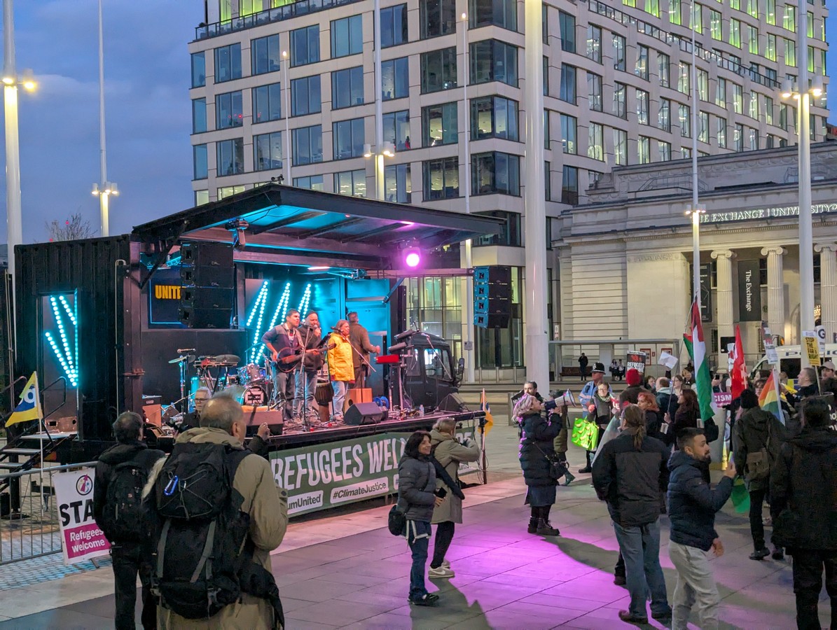 Speakers such as anti-Brexit activist Femi Oluwole stood on stage alongside bands such as Friendly Fire Band, tabla player Dalbir Rattan Singh, Banner Theatre, and dub poet Moqapi Selassie.