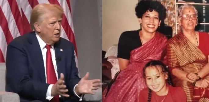 Donald Trump posted a photo of Kamala Harris wearing a sari alongside her family in a new jibe at her racial heritage.