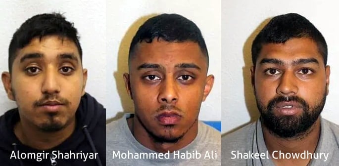 Their trial at the Old Bailey heard that Alomgir Shahriyar, aged 23, Mohammed Habib Ali, aged 23 and Shakeel Chowdhury, aged 22, were accompanied by a fourth gang member, Sallah Ali, aged 19 during the attack on the 22-year-old victim.