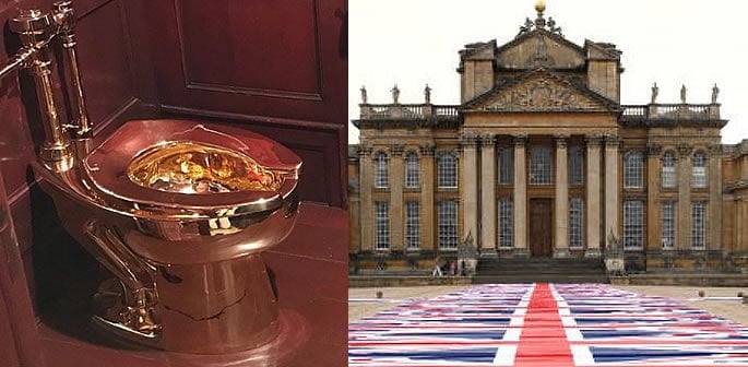 A solid gold toilet was stolen from Blenheim Palace in Oxfordshire, the birthplace of Winston Churchill. The theft took place during the early hours of the morning of Saturday, September 14, 2019.