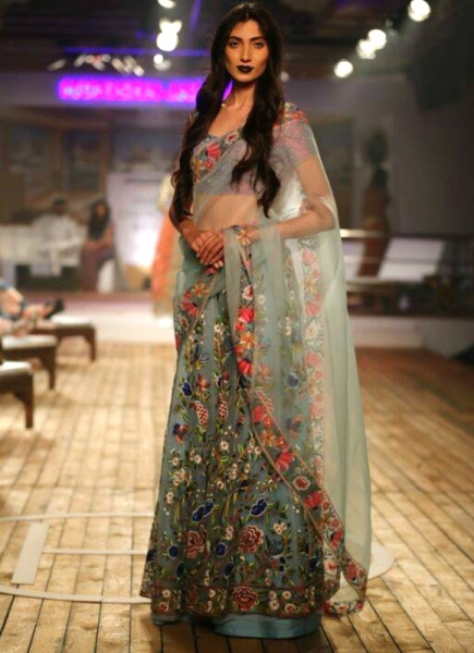The 20 minute long showcase was compact with sari gowns, lehengas, and enchanting designs.