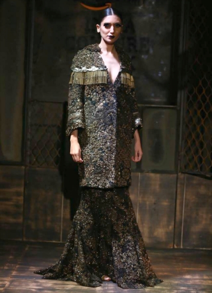 ‘Aurum’ by Varun Bahl was equally as tantilising. Merging together traditional bridal looks with a modern feminine beauty, Varun used a mix of ivory, pale blue, black, and burgundy colours to portray the range of his designs.