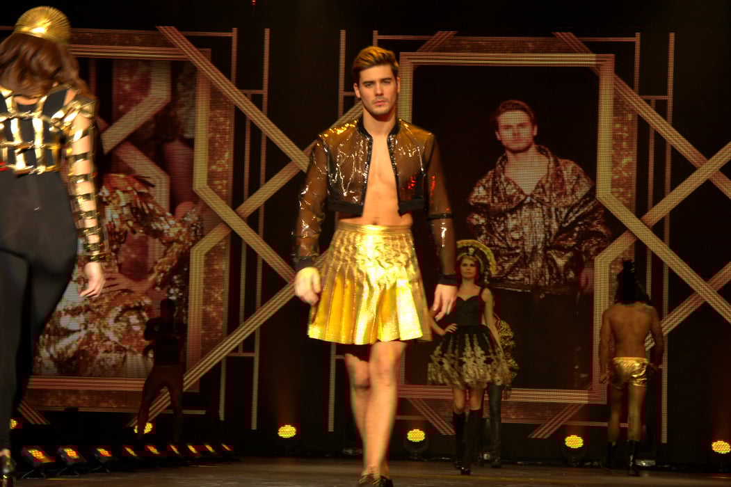 With the festive season here, Clothes Show Live dedicated 4 scenes to party wear. ‘Gatsby Gold’ shone on stage with gold sparkling jumpsuits paired with a statement headpiece. For men, long printed blazers are in this season with velvet collars to add a touch of elegance to a bold blazer.