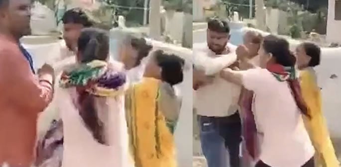 A video has circulated of an Indian husband being beaten by his wife and mother-in-law.
