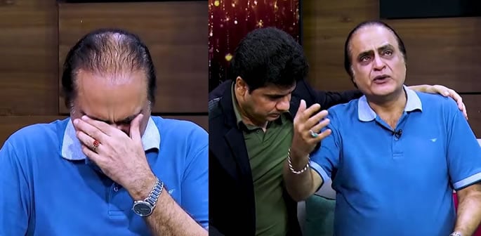 Mehmood began to tear up and during this vulnerable moment, host Wasi Shah had to come and comfort him.