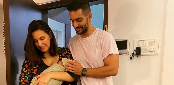 Neha Dhupia has revealed the face of her newborn son for the first time.