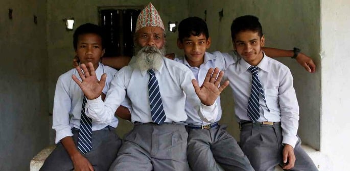 Sagar Thapa, one of Kami’s 14-year-old classmates says: “I used to think why is this old man coming to school to study with us? But as time passed I enjoyed his company.”