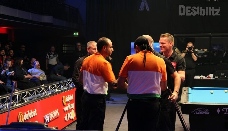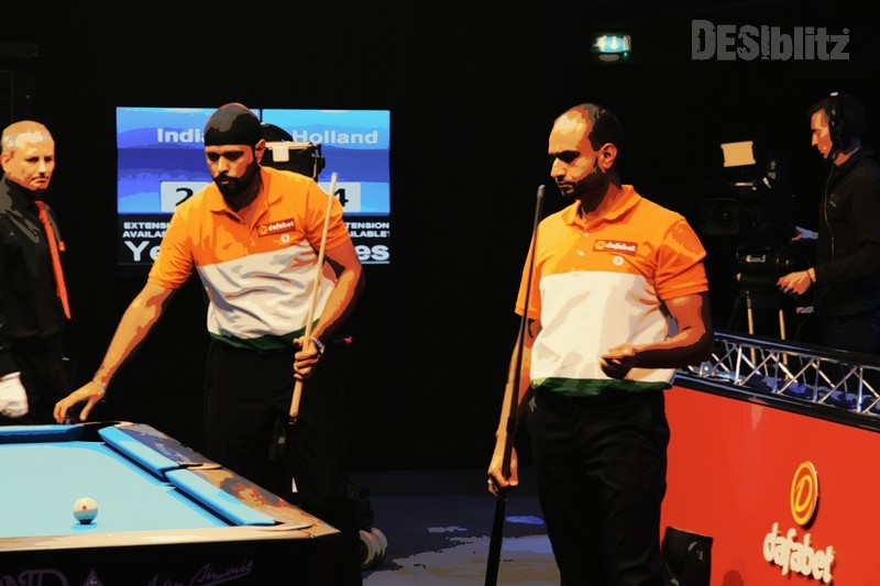 This was the return of Raj ‘The Hitman’ Hundal to the world of competitive pool once again, accompanied by partner Amar Kang, both wearing the pride of Indian coloured tops of orange, white and green.