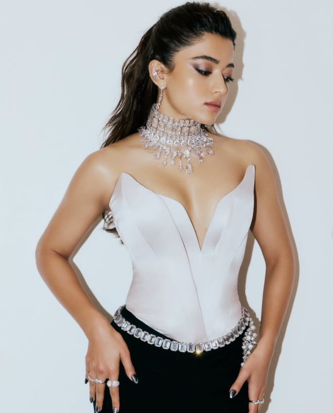 Adding brilliance to her ensemble, Rashmika adorned herself with several Swarovski jewellery pieces, capturing the brand’s ‘Mastery of Light’ theme perfectly.