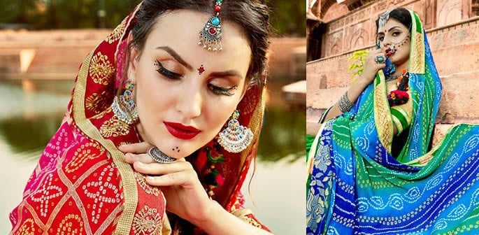 The royalty of Rajasthan and Gujarat is best expressed through their stunning Bandhej Sarees.