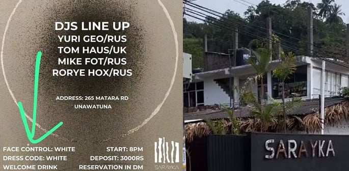 The ‘white party’ was due to be held in the Sarayka Lounge in Unawatuna.