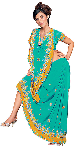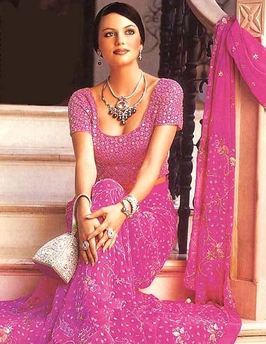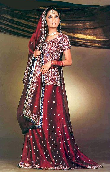 Next is the Lengha Choli. When the Moghuls invaded India in early B.C. they brought with them this unique style of a skirt and blouse. Today this style is most popular with Indian brides who wear this for their wedding gown. You can have any style in the Lengha, add any type of embroidery even decide the weight you want it. The other good feature with the Lengha is that it can be worn by any age group and still look good!