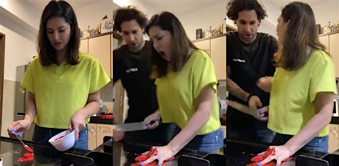 Bollywood star Sunny Leone played a hilarious prank on her husband Daniel Weber where she pretended to chop her finger off.