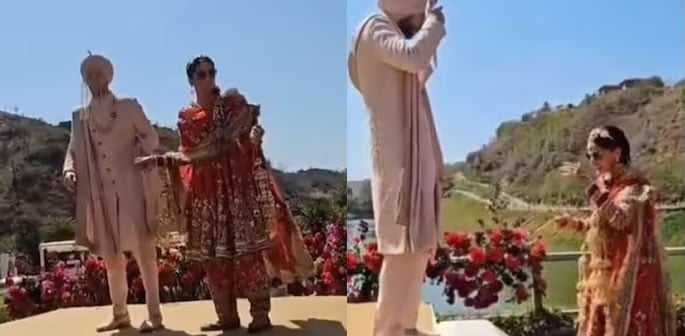 After the varmala ceremony, the newlyweds were seen hugging and kissing.