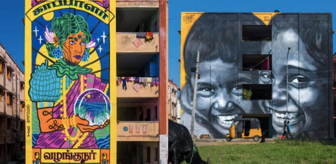 About a year ago, Chennai’s Kannagi Nagar, one of India’s largest resettlement housing areas, saw a dramatic transformation thanks to 16 artists who etched murals on several walls aiming to make Kannagi Nagar a public art destination.