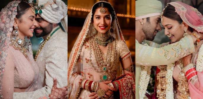 Rakul Preet Singh’s wedding to Jackky Bhagnani in February 2024 was a breath of fresh air in bridal fashion, as she broke away from the traditional red.