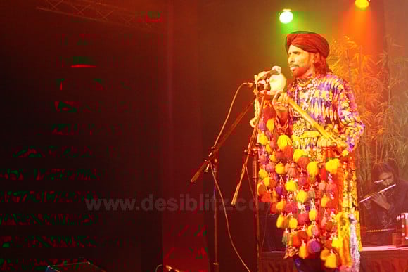 Half way through the show Sain stamped his foot hard onto the stage floor and shattered his ankle bells, which were immediately brushed away by one of the backing singers so not to cause any harm to Sain.