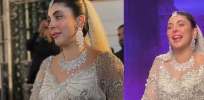 Dressed in an intricately embellished ivory outfit, paired with sparkling diamond jewellery, Urwa exuded elegance.