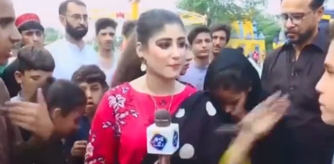 Her Twitter caption was written in Urdu: “This guy was harassing the family during the interview which made the family upset.